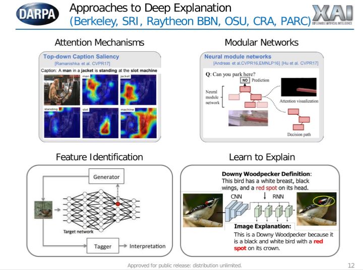 Recent examples of explainable AI: Most of the work has been in deep learning focused on image classification. Baxter discussed examples from recent papers. There are also approaches using heat maps. We can also do the same thing with text